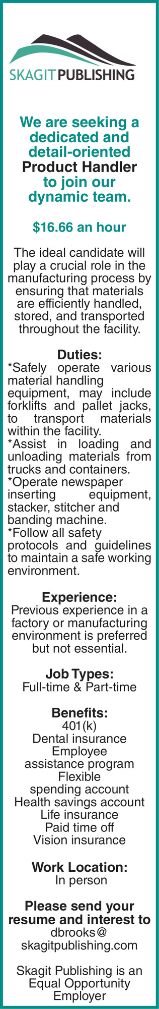 Oct 03, 2025. Skagit Publishing Laborers Jobs from GoSkagit Jobs