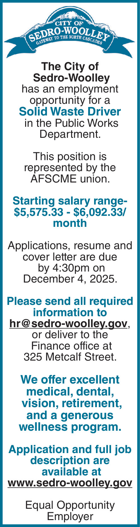 Nov 22, 2025. City Of Sedro-Woolley Drivers Jobs from GoSkagit Jobs