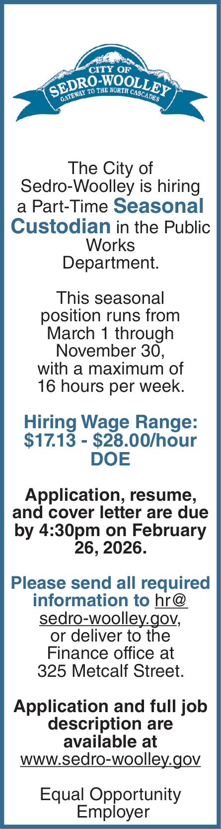 Feb 13, 2026. City Of Sedro-Woolley Custodian Jobs from GoSkagit Jobs