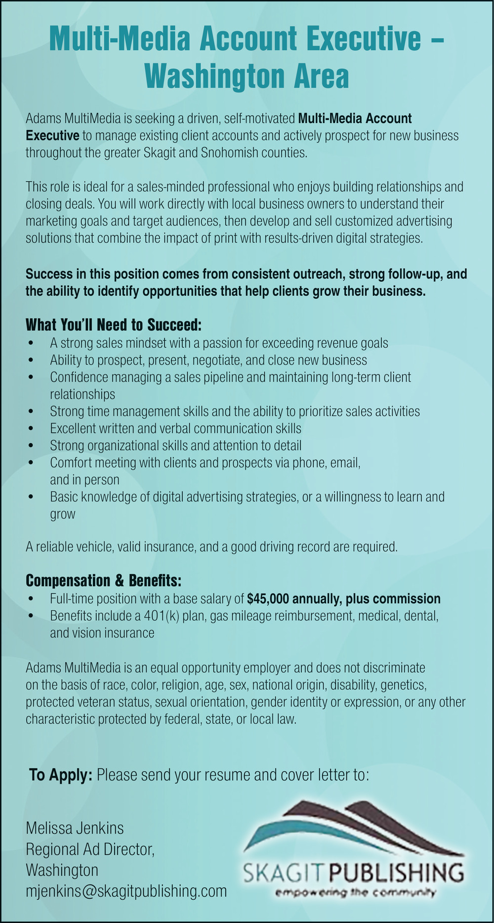 Multi-Media Account Executive Positions Open in Mount Vernon, WA