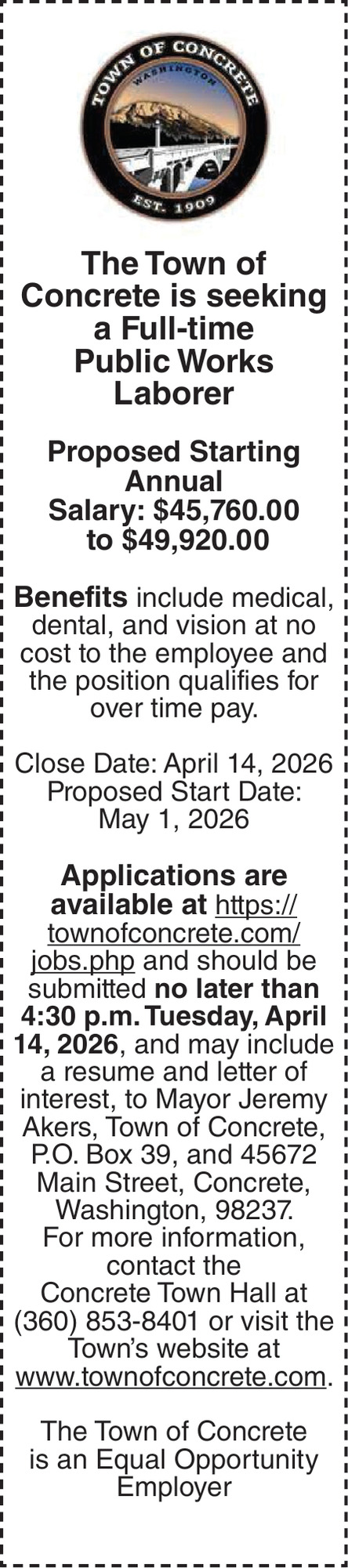 Apr 01, 2026. Town Of Concrete Clerk Jobs from GoSkagit Jobs