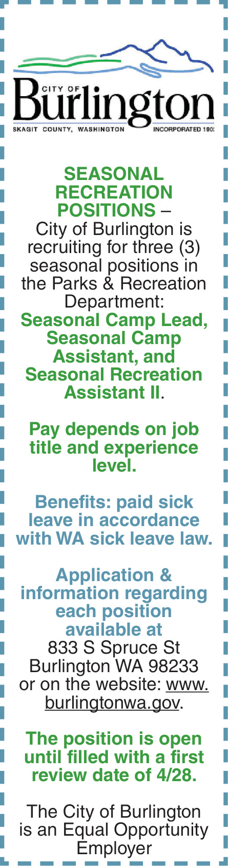 Apr 16, 2026. City of Burlington Maintenance Jobs from GoSkagit Jobs